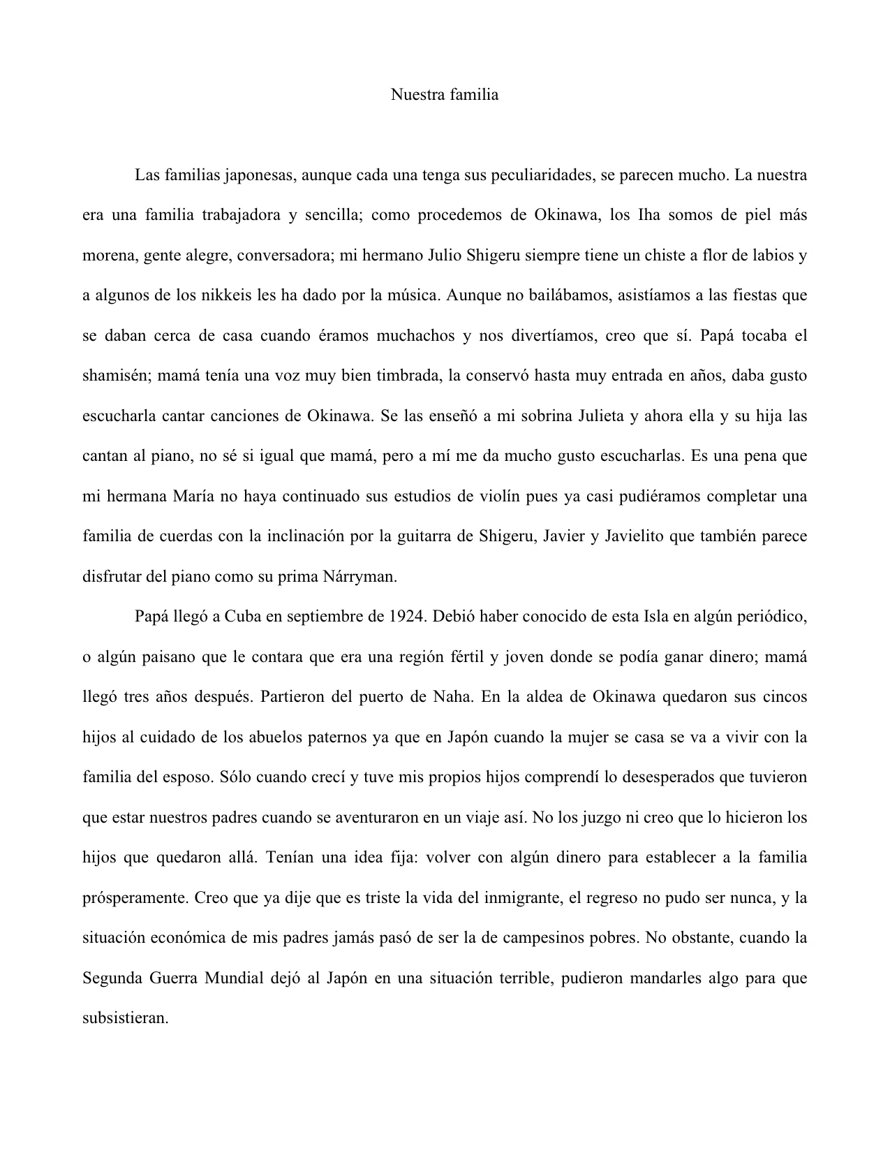 Los capítulos “Nuestra familia” y “Mi padre” pertenecen al libro Shamisén, de Benita Eiko Iha Sashida. Esta versión digital fue autorizada por la autora, y reproduce con gran exactitud la forma y el contenido del texto impreso.