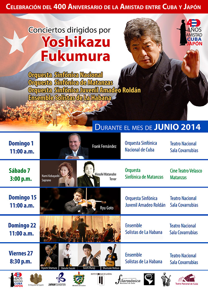May 23, 2014 May 23, 2014/ Miharu M. Miyasaka 5 concerts with Cuban and Japanese musicians, to take place in Havana and Matanzas, in June 2014! For more info, check out the Calendar section Calendar/June 2014