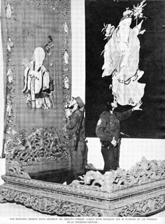 As a curiosity: this picture was taken at the Hacienda Cortina by Cuban photographer Raúl Corrales, and published in Revista INRA in January 1960. According to its caption, the paintings and wood-carved work were found in the pagoda of the Hacienda Cortina.