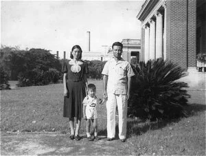 In this picture from 1941, Kanji Miyasakawith his wife, Kesano, and son, Francisco, while he worked as a gardener in the Stewart Sugar Mill (nowadays Central Venezuela), in Ciego de Ávila province (previously part of Camagüey province).