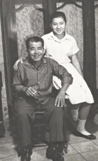 In this picture from 1964, Zenshun “Manolo” Ishikawa (Kyukichi Ishikawa's brother) and his daughter, Isabel. According to his granddaughter, Sayuri Martínez Ishikawa, he worked in the cultivation of flowers in Pinar del Río, and in the mid 1950s he "worked for a long time as a gardener in the residence of a doctor in Havana City's Miramar neighbourhood." His daughter, Isabel Ishikawa, recalls that "working on the grafting of the so-called Bulgarian rose was one of the last things he did as a gardener." He then went to work for the Cuban Fishing Fleet.